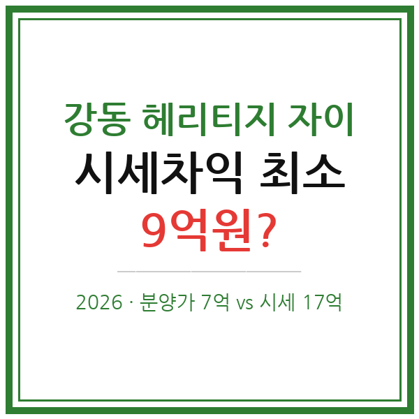 강동 헤리티지 자이 청약이 2026년 4월 13일 무순위로 진행된다. 분양가 7억원대, 현 시세 17억원이라는 압도적인 가격 차이로 서울 로또 청약이라는 평가가 쏟아지고 있다. 강동 헤리티지 자이 청약이 단순한 기대감인지 실제 투자 논리가 뒷받침되는지 수치 기반으로 따져본다.